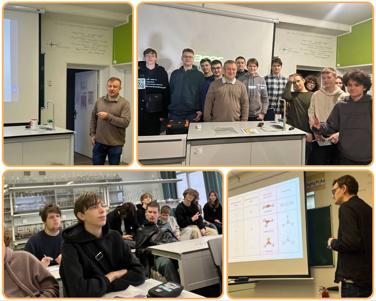 Впродовж трьох лекцій, які відбулись цього семестру, учні детальніше ознайомились з темами, що стосуються особливостей просторової будови неорганічних молекул, електронної будови та механізмів реакцій органічних сполук.